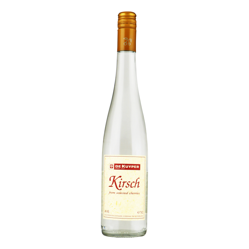De Kuyper Kirsch, een traditioneel gedistilleerde Nederlandse drank, wordt gemaakt van handgeselecteerde kersen zonder toevoegingen. Perfect voor cocktails. Alcoholpercentage: 40%.